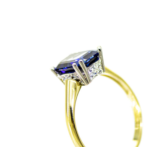 Pierścionek, ze złota pr 585. Z oprawioną cyrkonią Swarovski w kolorze Topaz London Blue.