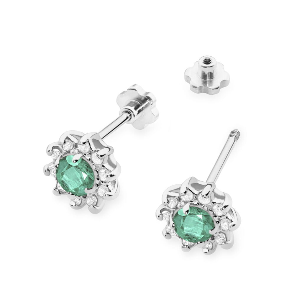 Kolczyki K0185 Szmaragd 2 x 0,15ct białe złoto sztyft zakręcany