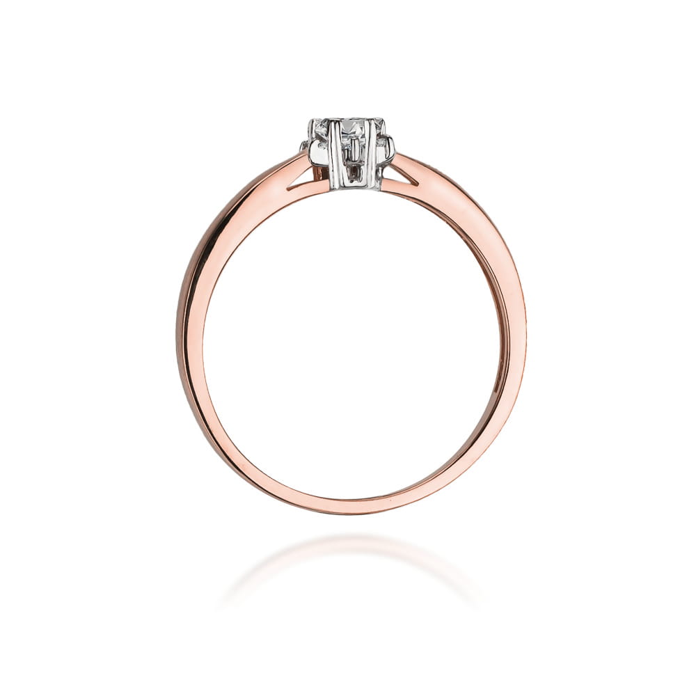 Złoty pierścionek z diamentem, z delikatnym, błyszczącym wykończeniem.