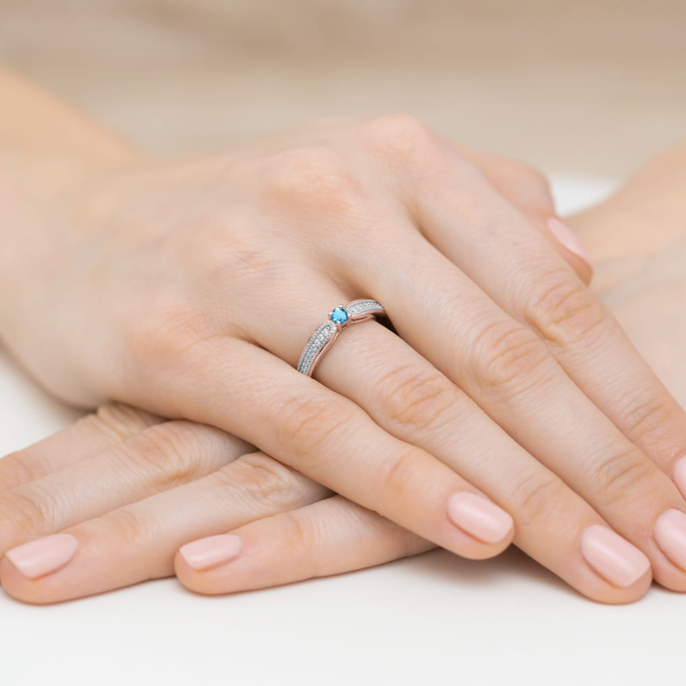 Home / BIŻUTERIA ZŁOTA, DIAMENTY, Pierścionki, Pierścionki Kamienie Kolorowe / Pierścionek W0449 Topaz Swiss 0,15ct różowe złoto