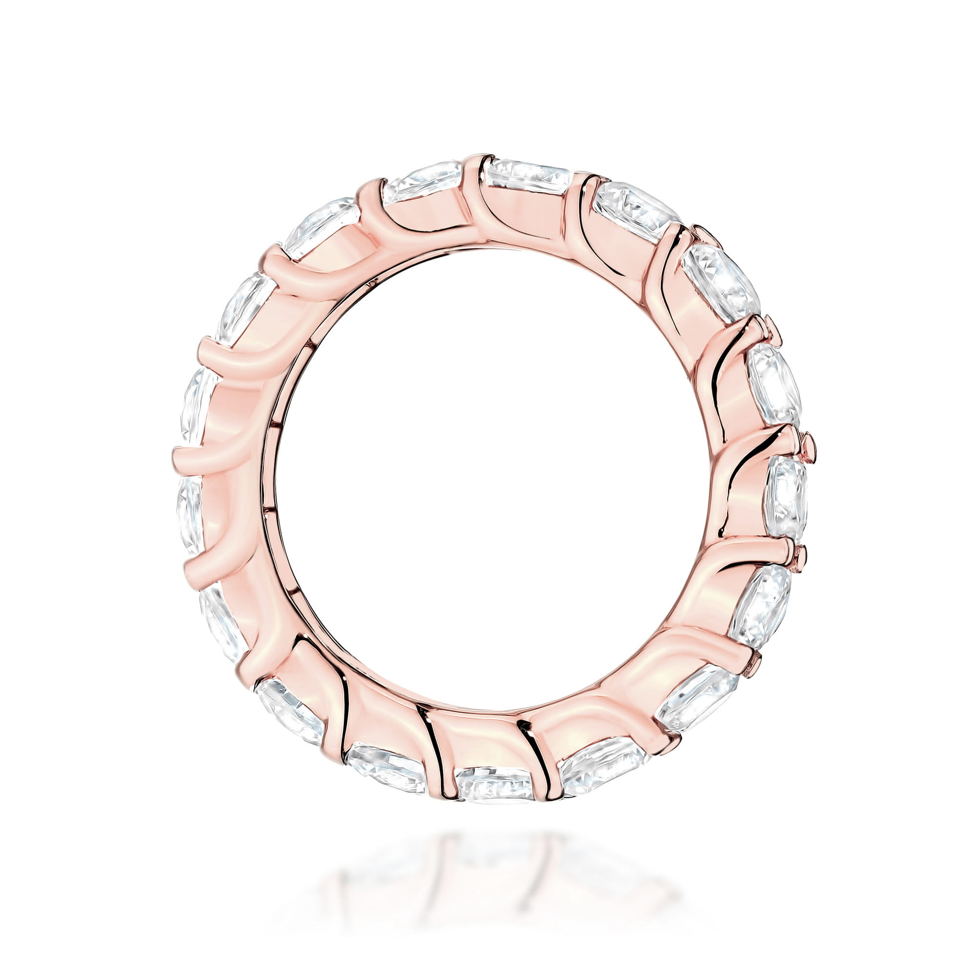 Różowe złote pierścionek z dużym, okrągłym diamentem osadzonym w sześciu szponach.