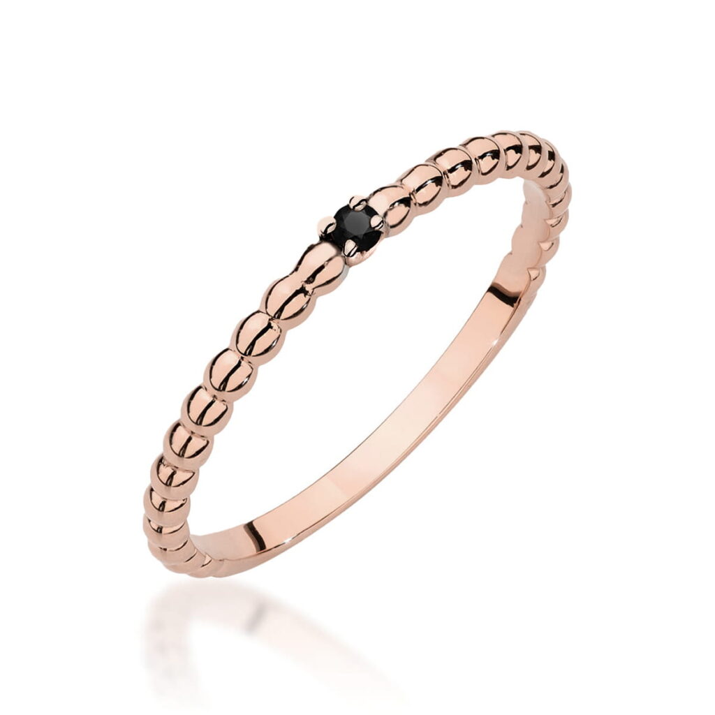 Pierścionek W0619 Czarny Diament 0,12ct żółte złoto