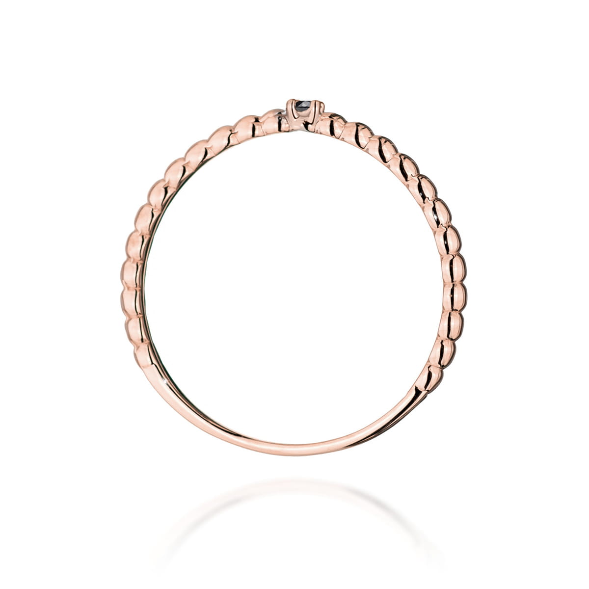 Złota obrączka z pięcioma czarnymi kamieniami wzdłuż górnej krawędzi.
