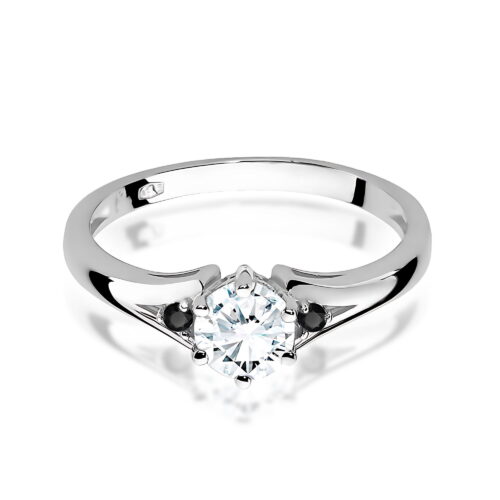 Pierścionek W0076 Biały Szafir 0,60ct białe złoto z czarnymi diamentami